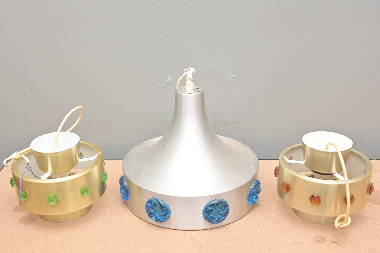 THREE RETRO DANISH PENDANT LIGHTS (A/F) (25H X 29DIA CM) (LEONARD JOEL DELIVERY SIZE: MEDIUM)