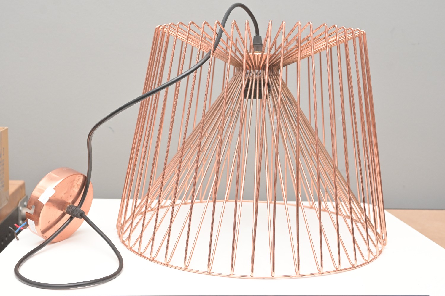 A COPPER COLOURED WIRE FORM PENDANT LAMP (A/F) (31H X 40DIA CM) (LEONARD JOEL DELIVERY SIZE: MEDIUM)