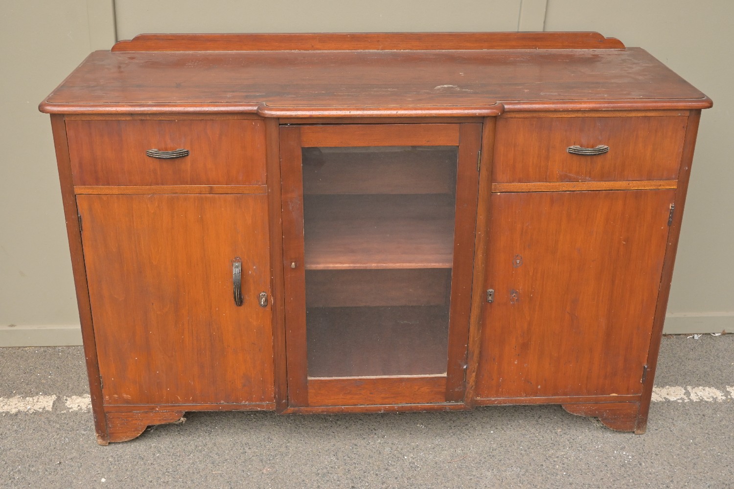 A LARGE ART DECO THREE DOOR SIDEBOARD (A/F) (96H X 150W X 54D CM) (THIS HEAVY ITEM MUST BE REMOVED BY CARRIERS AT THE CUSTOMER'S EXPENSE. LEONARD JOEL STAFF WILL NOT ASSIST CARRYING THIS ITEM) (X-LARGE ITEM)