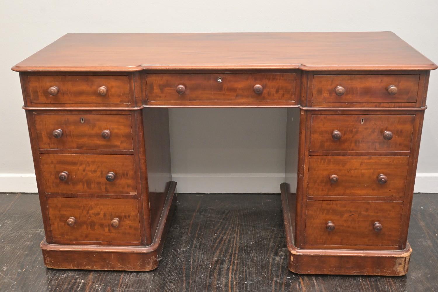 A VICTORIAN MAHOGANY PEDESTAL DESK (A/F) (KEY IN OFFICE) (81H X 137W X 59D CM) (LEONARD JOEL DELIVERY SIZE: X-LARGE)