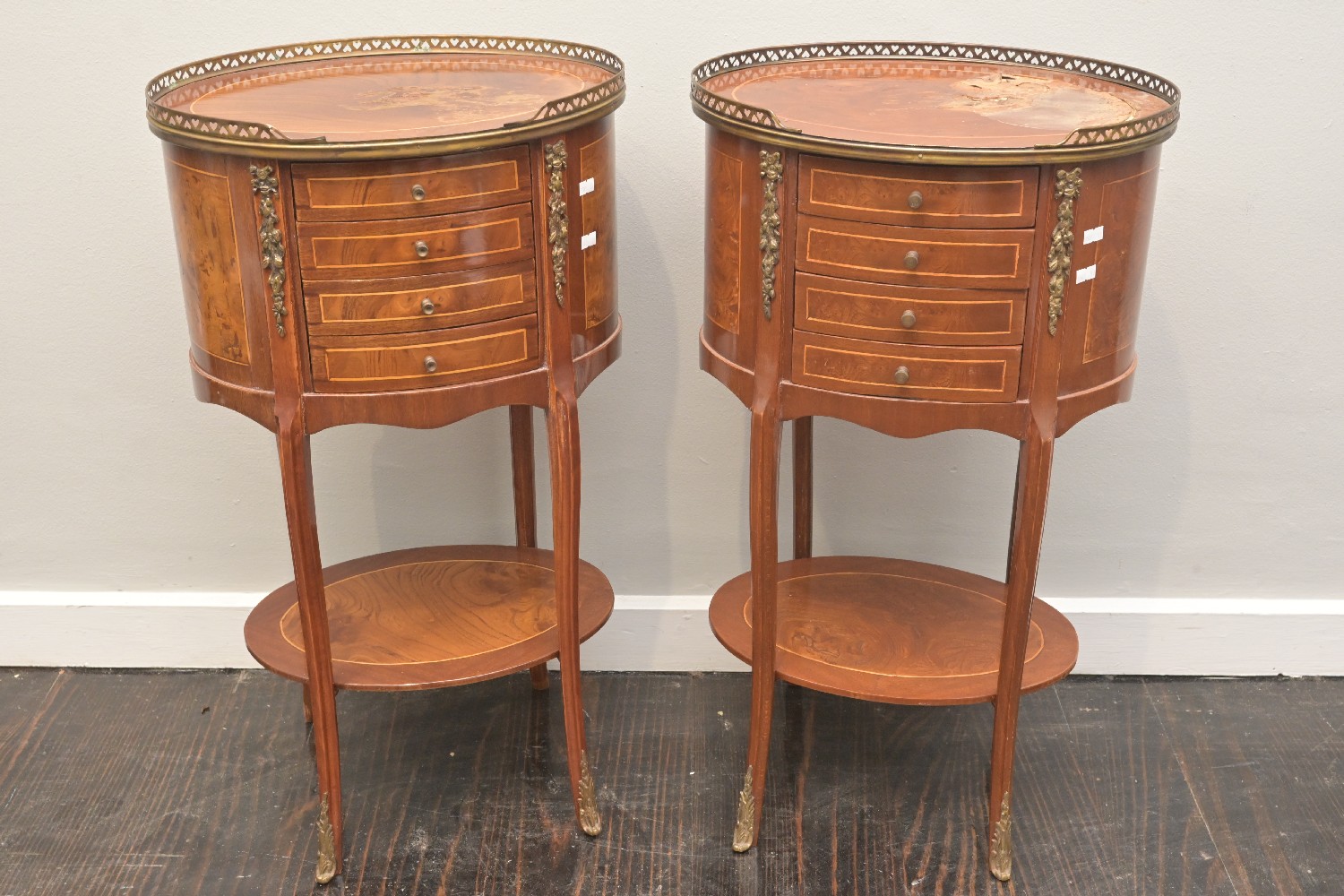A PAIR OF LOUIS XVI-STYLE STANDS / SIDE TABLES (A/F) (77H X 43W X 31D CM) (LEONARD JOEL DELIVERY SIZE: LARGE)