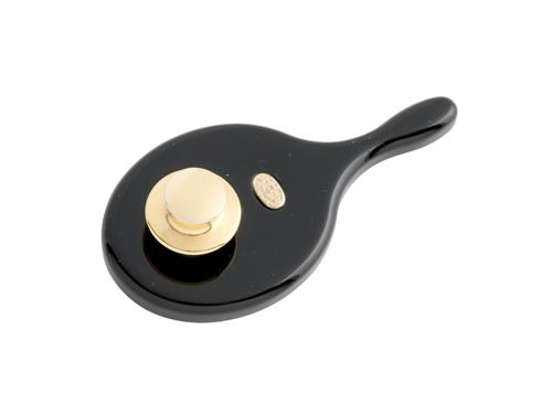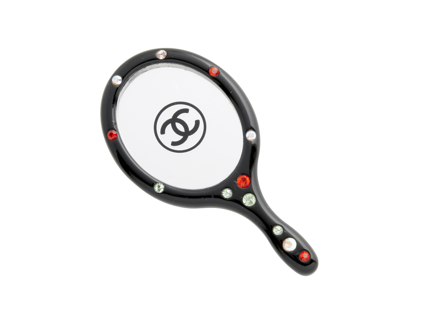 Styled in black composite in the form of a mirror featuring white and red crystal detail, 4.5cm.