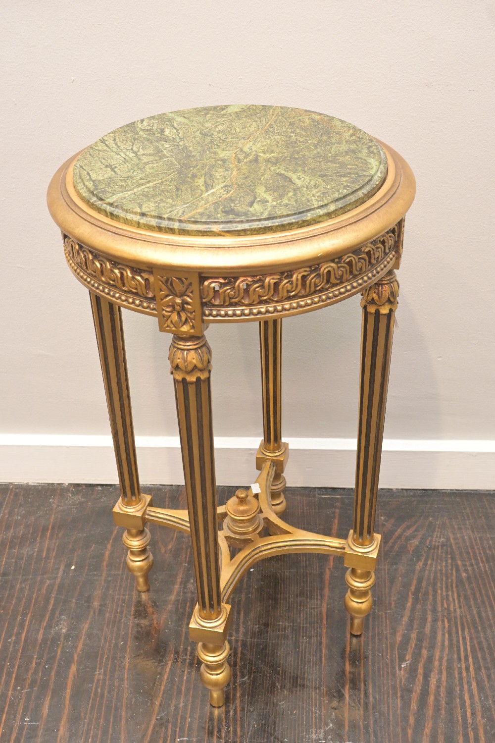A FRENCH STYLE GILT STAND WITH FAUX MARBLE (74H X 40DIA CM) (LEONARD JOEL DELIVERY SIZE: LARGE)