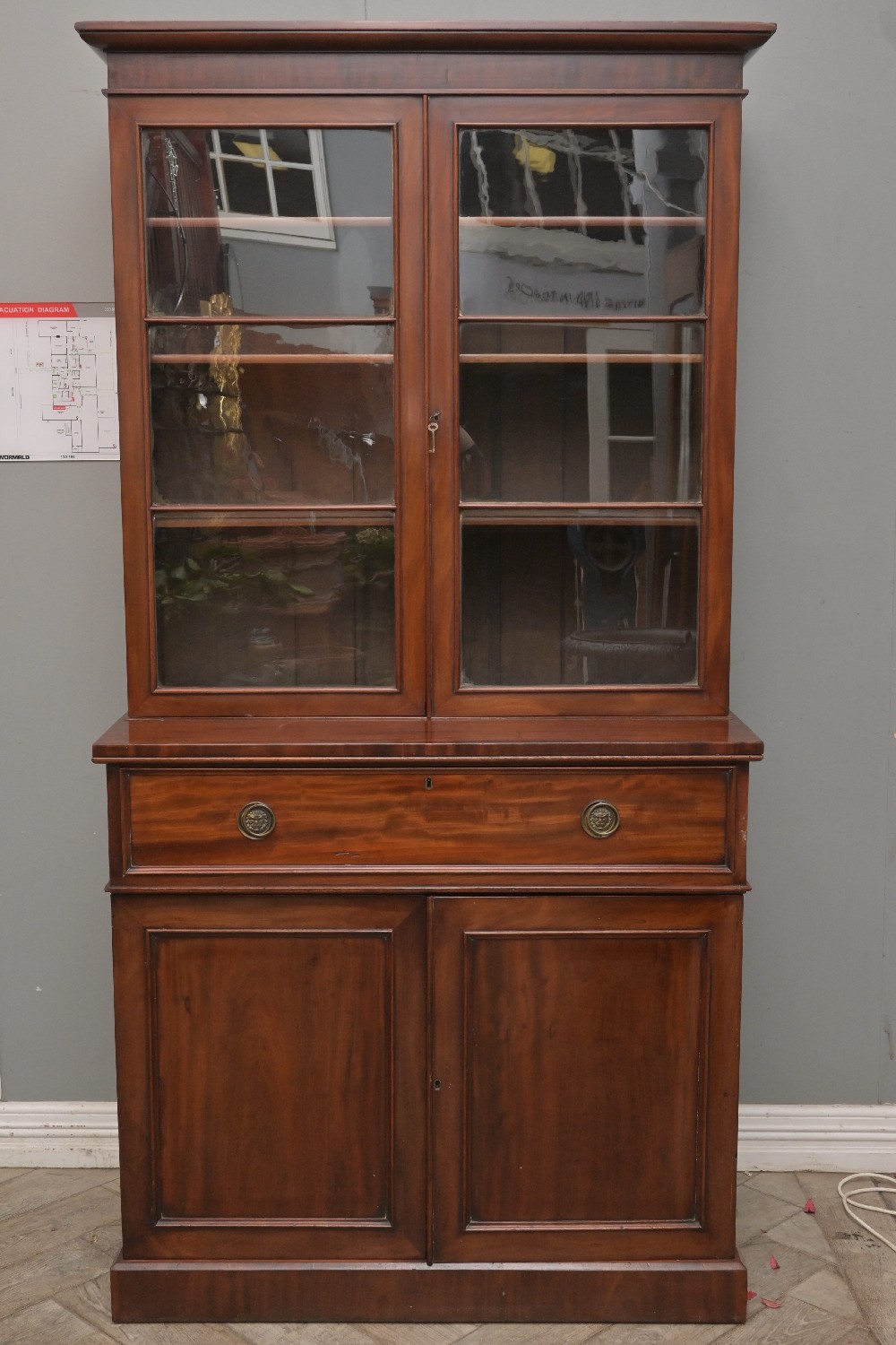 AN ANTIQUE STYLE BOOKCASE CABINET (A/F) (213H X 107W X 50D) (PLEASE NOTE THIS HEAVY ITEM MUST BE REMOVED BY CARRIERS AT THE CUSTOMER'S EXPENSE. LEONARD JOEL STAFF CANNOT ASSIST CARRYING THIS ITEM) (X-LARGE ITEM)