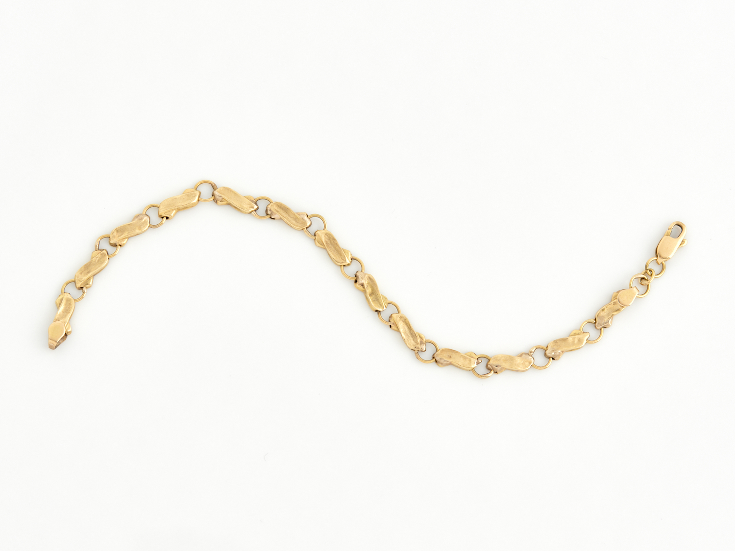 A FANCY LINK BRACELET TO A PARROT CLASP STAMPED 18CT GOLD, 180MM, 4.8GMS