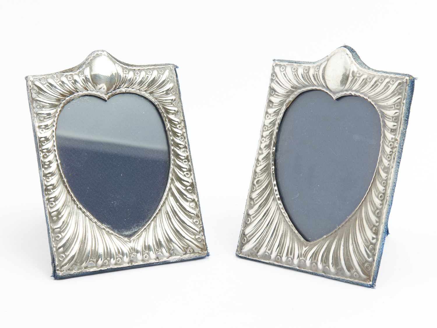 A PAIR OF STERLING SILVER HEART SHAPE PICTURE FRAMES H.19CM LEONARD JOEL DELIVERY SIZE: SMALL