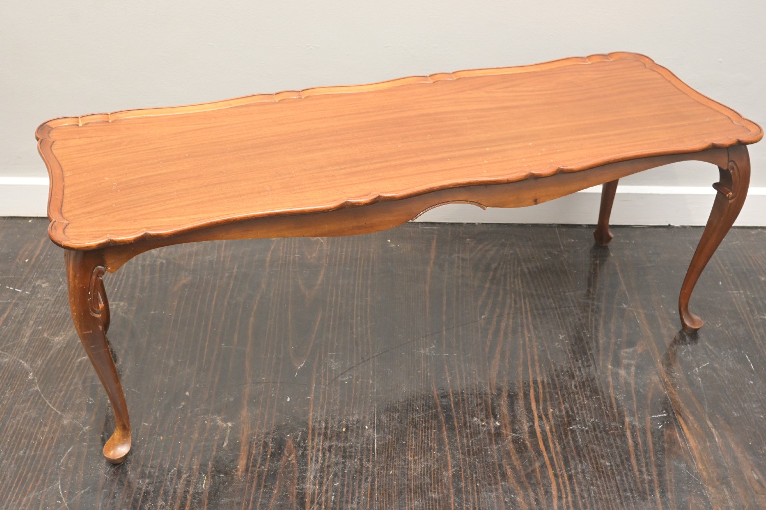 A PIE CRUST EDGE NARROW COFFEE TABLE (A/F) (46H X 121W X 44D CM) (LEONARD JOEL DELIVERY SIZE: LARGE)