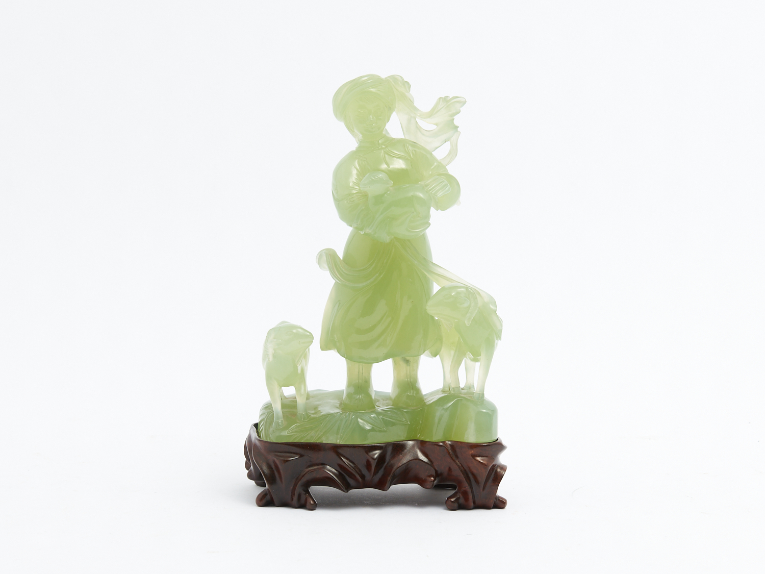 A CHINESE SIMULATED JADE FIGURE OF A SHEPERD BOY ON STAND, 19TH CENTURY H.24CM, LEONARD JOEL DELIVERY SIZE: SMALL