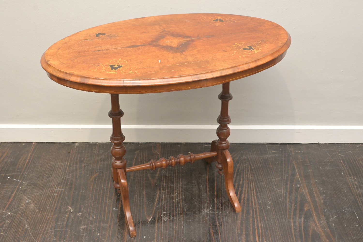 A VICTORIAN BURR WALNUT AND INLAID GAMES TABLE (A/F) (73H X 92W X 56D CM) (LEONARD JOEL DELIVERY SIZE: LARGE)