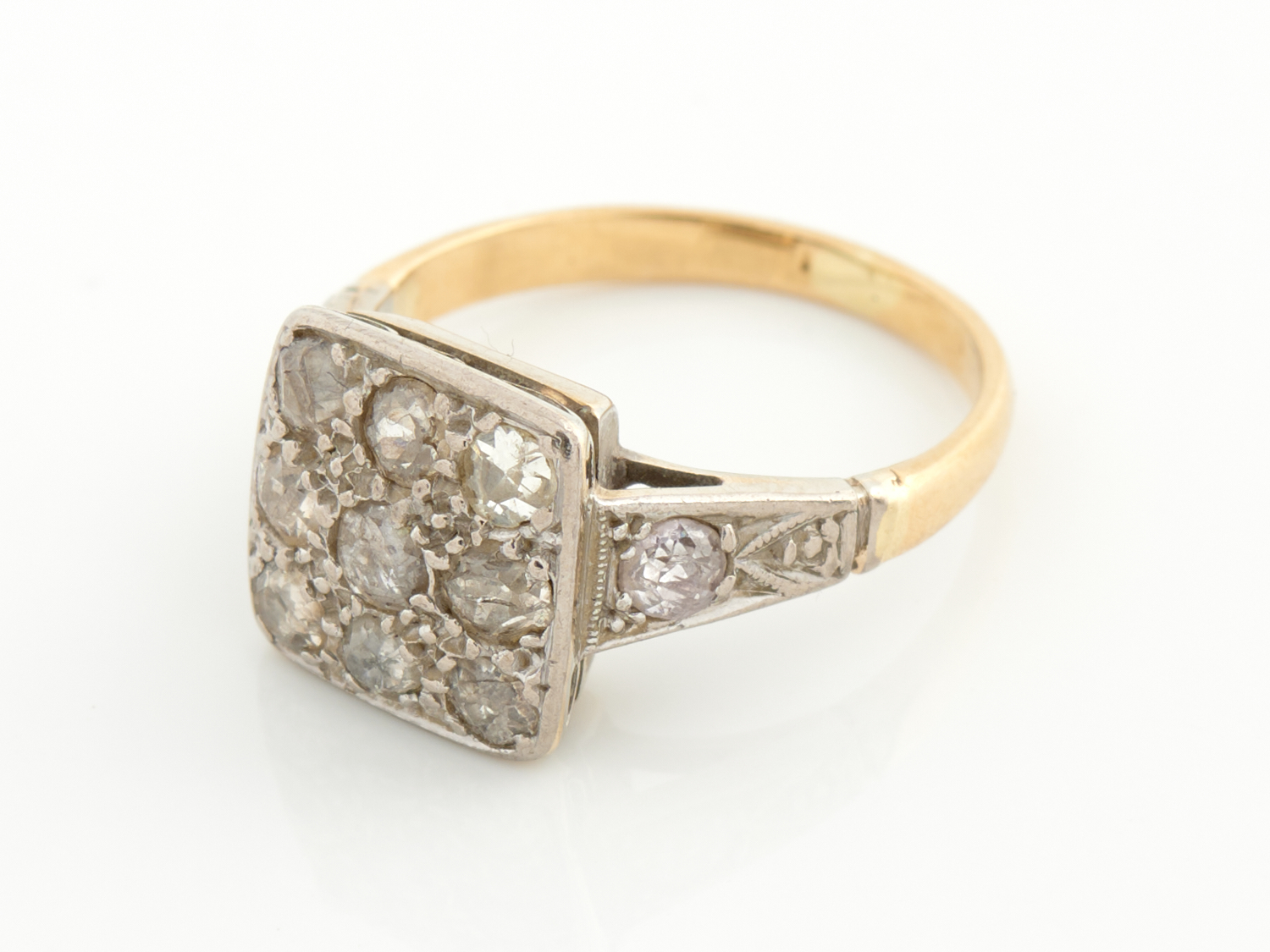 AN ART DECO DIAMOND RING IN 18CT GOLD AND PLATINUM, SIZE J, 3.8GMS