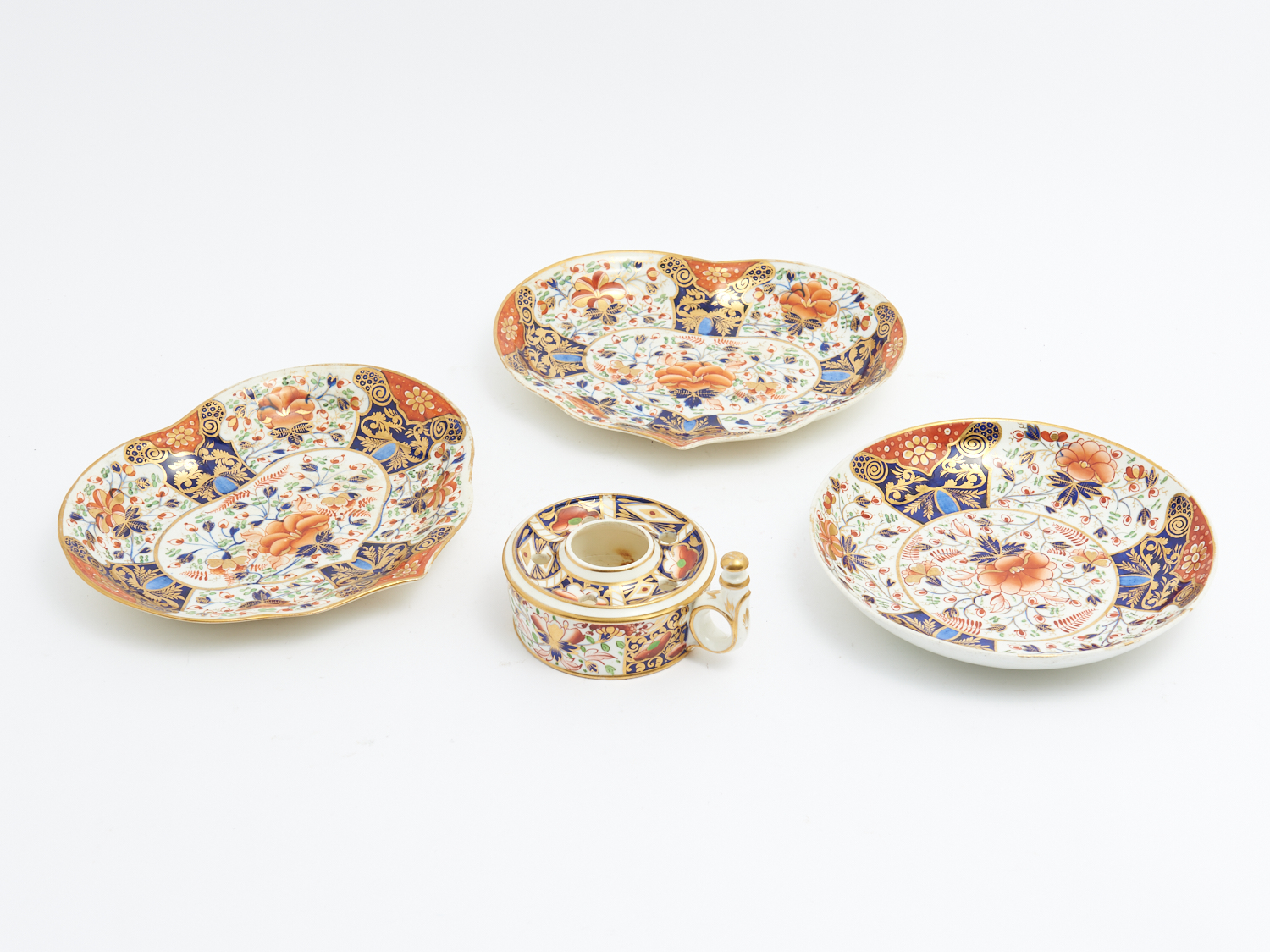 FOUR PIECES OF ROYAL CROWN DERBY IMARI PATTERN PORCELAIN (A/F) L.25CM (LARGEST), LEONARD JOEL DELIVERY SIZE: MEDIUM