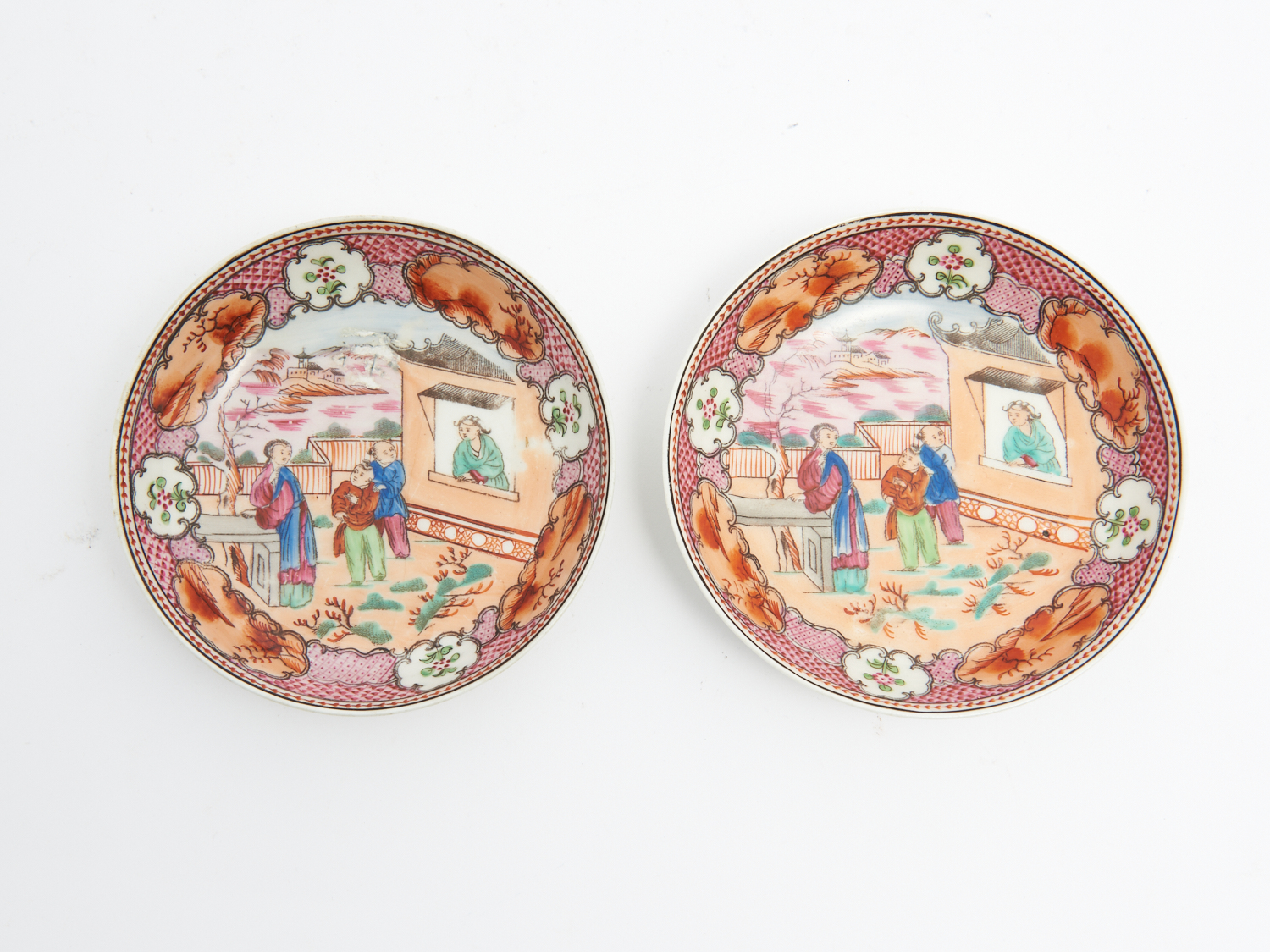 TWO ENGLISH ANTIQUE CHINOISSERIE TRANSFER DECORATED BOWLS DIA.13.5CM (A/F), LEONARD JOEL DELIVERY SIZE: SMALL