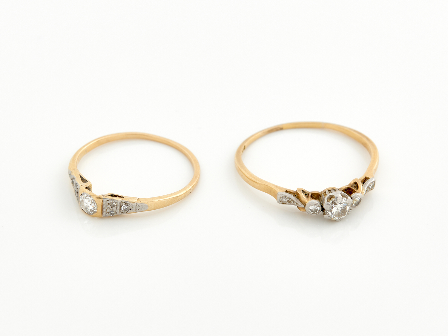 TWO DIAMOND SET RINGS IN 18CT GOLD AND PLATINUM, SIZE Q AND V, 4.1GMS
