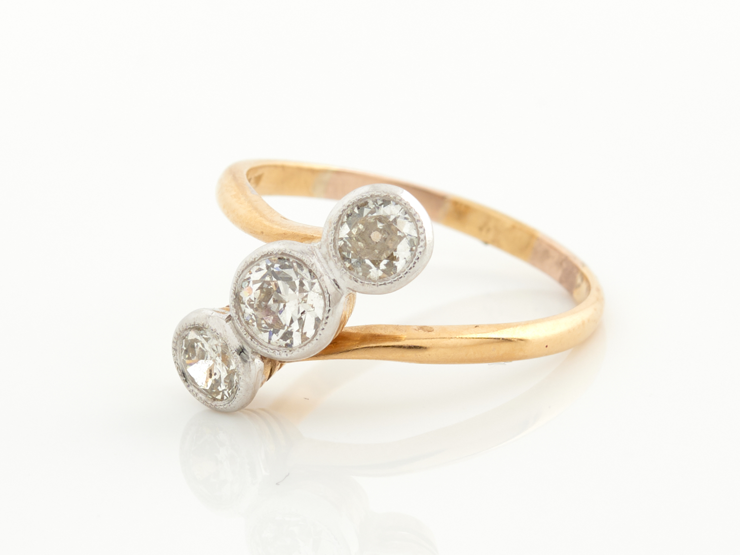 A THREE STONE DIAMOND RING IN 18CT GOLD, SIZE M, 2.9GMS