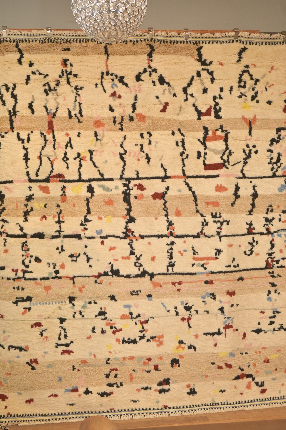 A MODERN MARRAKESH COLLECTION RUG, 100% WOOL -WARP-WEFT PILE, HAND KNOTTED. FINISHED WITH A SUMAC KILIM FRINGE. IN MULTI COLOUR TONES. SIZE: 253 X 313 CM ORIGIN: INDIA – RRP: $4,200 DOCUMENTATION OF AUTHENTICITY INCLUDED.