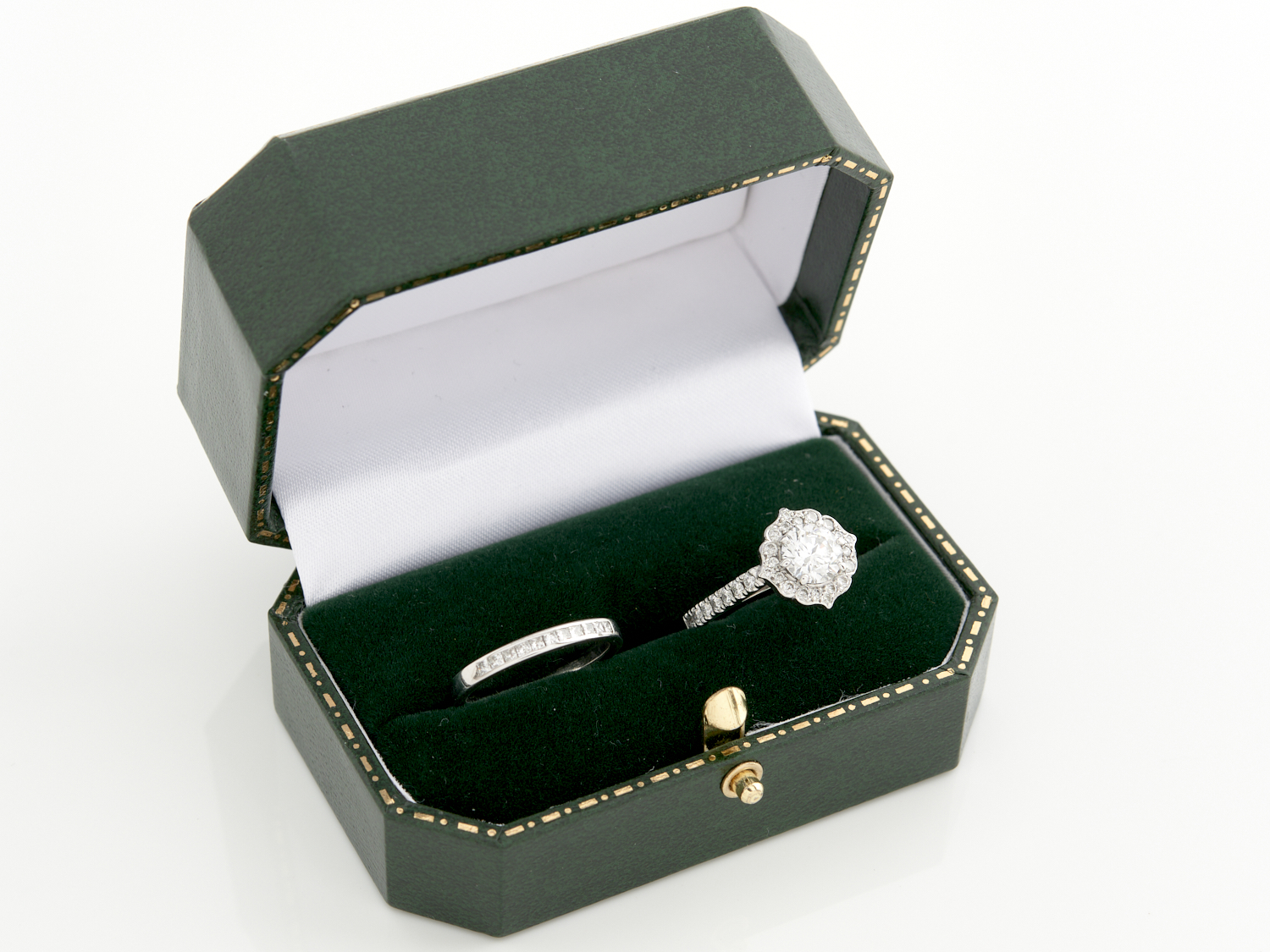 A DIAMOND RING SUITE IN 18CT WHITE GOLD, INCLUDING AN ENGAGEMENT RING AND BAND, THE CENTRAL DIAMOND TOTALLING 1.16CTS (D/VS2), SIZE L AND K1/2, ACCOMPANIED BY A COPY OF A GIA REPORT