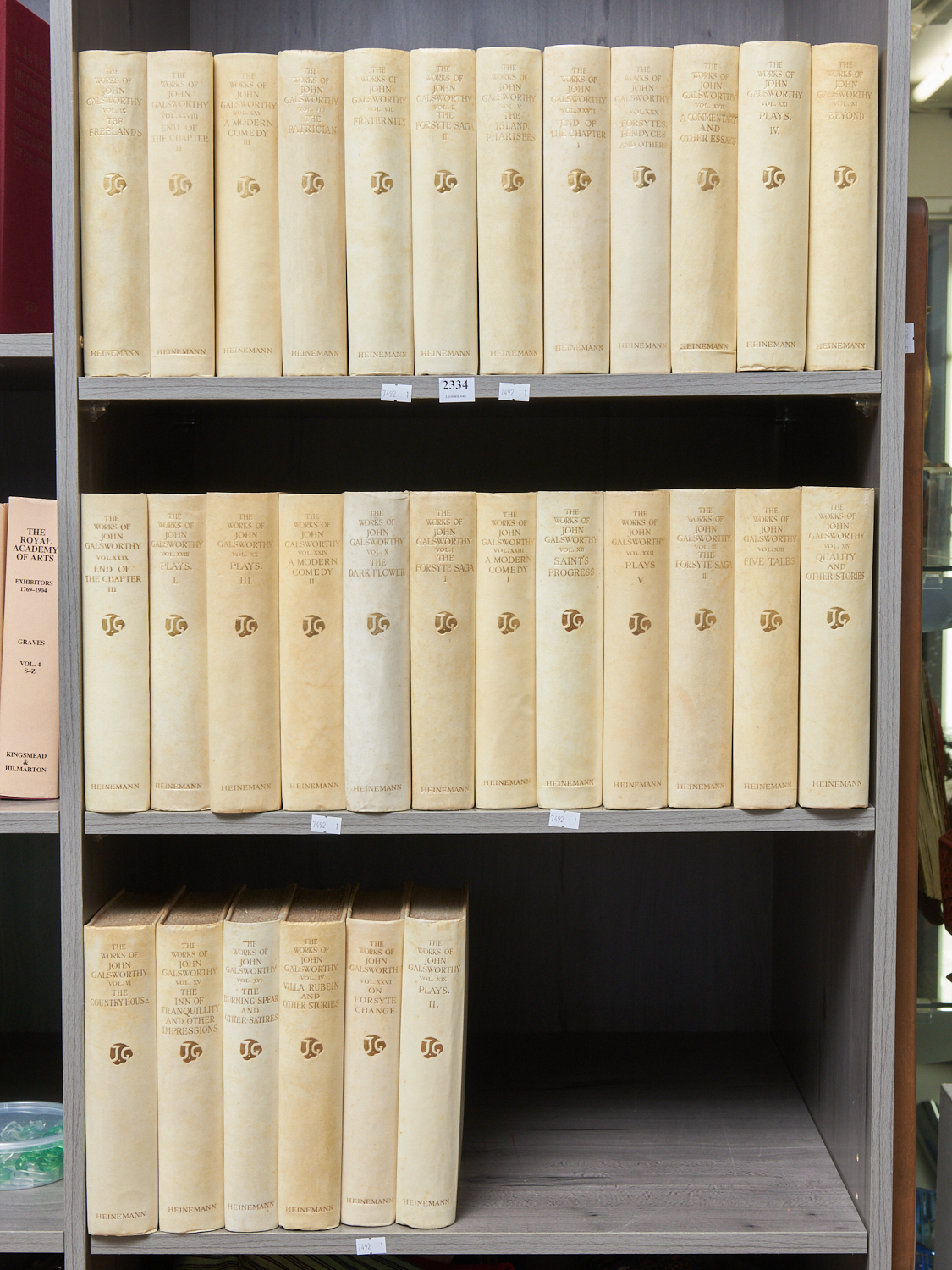 A COMPLETE VELUM BOUND 30 VOLUME SET OF THE WORKS OF JOHN GALSWORTHY, LIMITED TO 500, SIGNED BY THE AUTHOR, LEONARD JOEL DELIVERY SIZE: X-LARGE