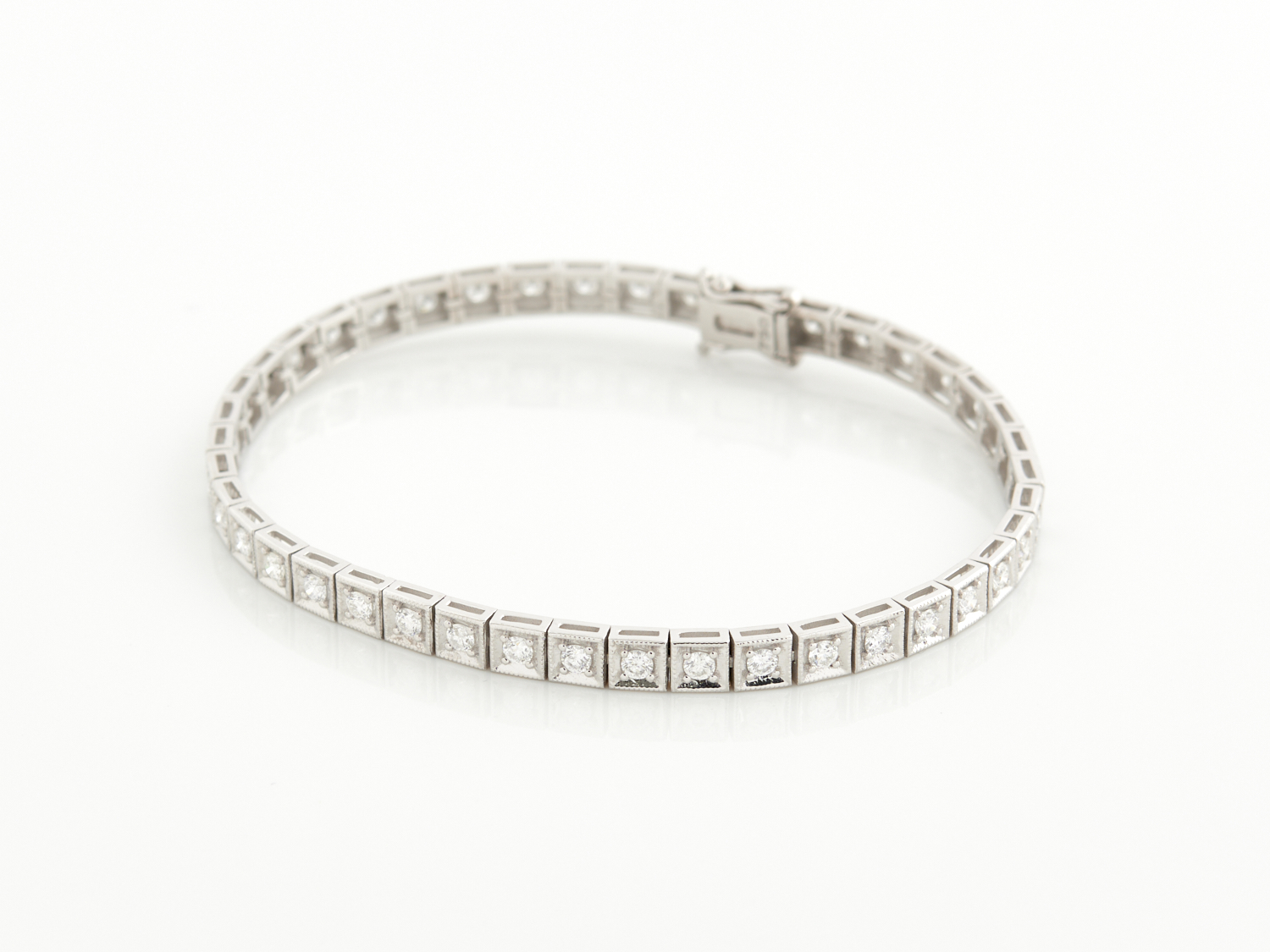 A DIAMOND LINE BRACELET IN 18CT WHITE GOLD, THE DIAMOND WEIGHING 2.65CTS, F-G/VS-SI, ACCOMPANIED BY A VALUATION