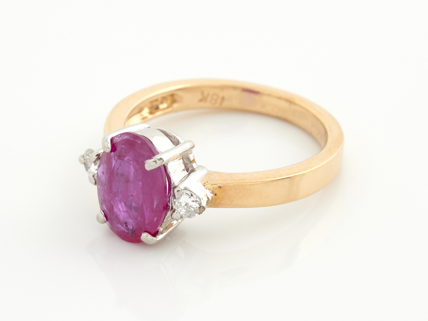 A MOZAMBIQUE RUBY RING IN 18CT TWO TONE GOLD, THE RUBY WEIGHING 2.26CTS, SIZE L, ACCOMPANIED BY A VALUATION