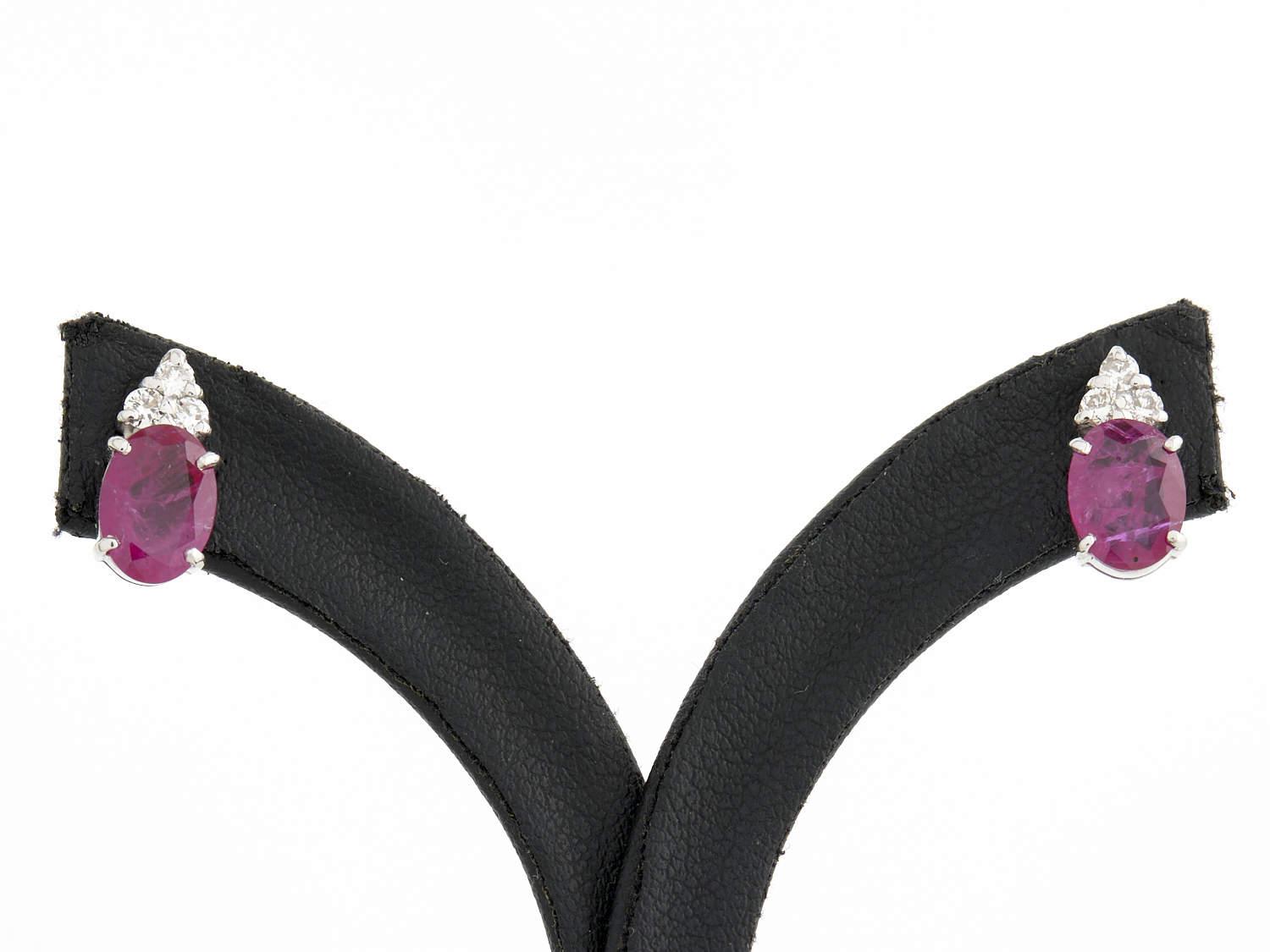 A PAIR OF MOZAMBIQUE RUBY EARRINGS IN 18CT WHITE GOLD, THE DIAMONDS TOTALLING 0.20CTS, THE RUBIES TOTALLING 2.60CTS, TO POST AND BUTTERFLY FITTINGS