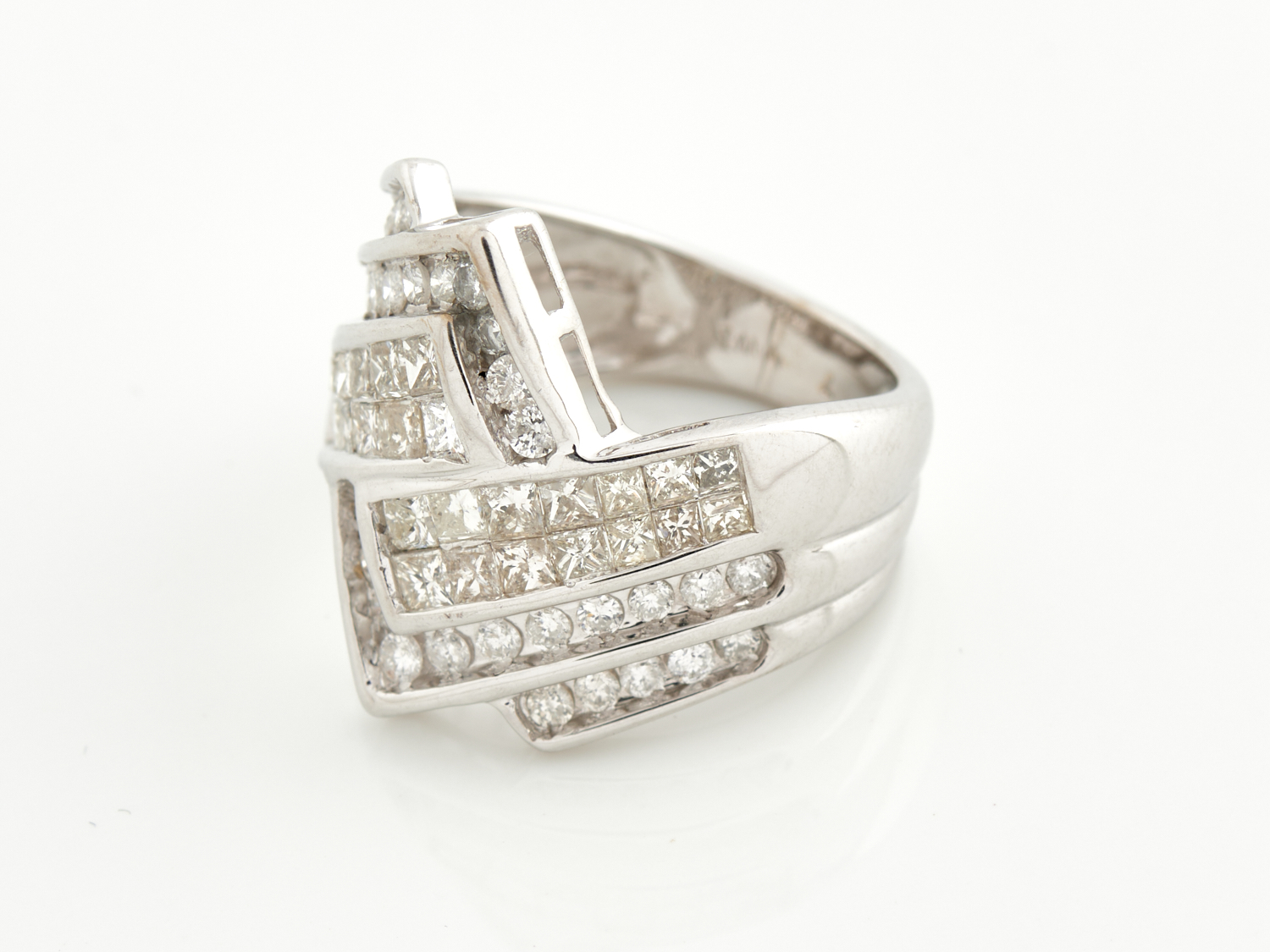 A DIAMOND RING IN 14CT WHITE GOLD, THE PAVE SET DIAMONDS TOTALLING 2.25CTS, SIZE N, 8.2GMS