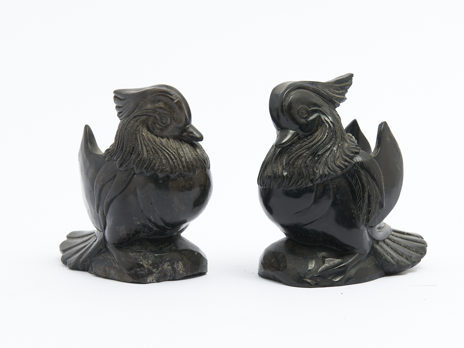 A PAIR OF CARVED MANDARIN DUCKS H.11CM, LEONARD JOEL DELIVERY SIZE: SMALL