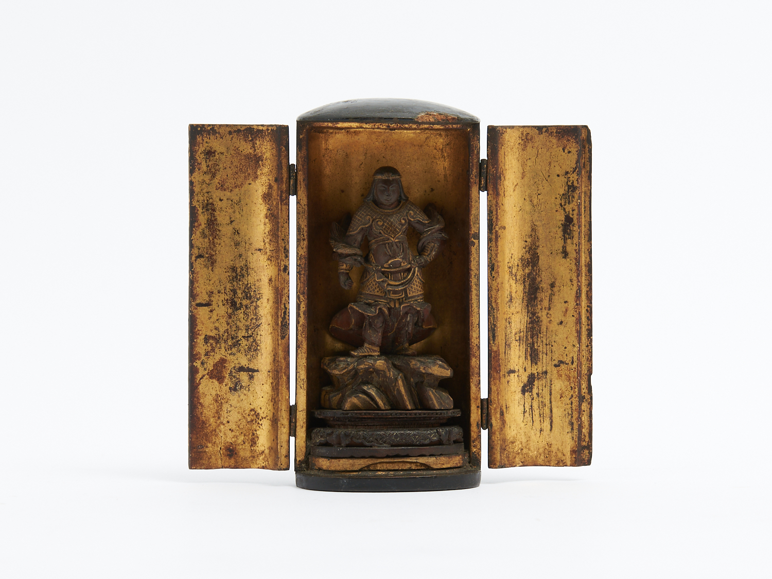 A PORTABLE LACQUER AND WOOD BUTSUDAN (A/F) H.12CM, LEONARD JOEL DELIVERY SIZE: SMALL