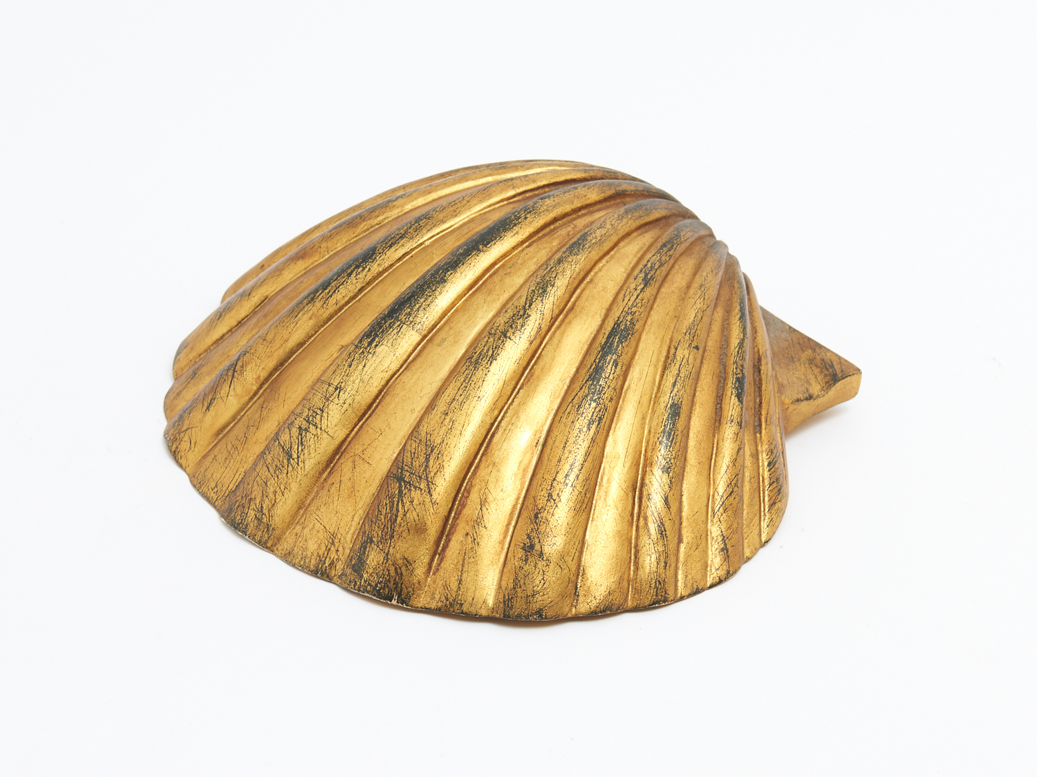 A GOLD LACQUER SHELL (POSSIBLY A SAMURAI HELMET ORNAMENT) H.21CM, LEONARD JOEL DELIVERY SIZE: SMALL