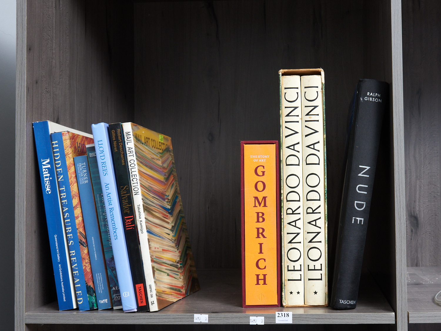 A SHELF OF ART REFERENCE INCLUDING LEONARDO DA VINCI, THE STORY OF ART/GOMBRICH, THE IMPRESSIONISTS, AND LLOYD REES, LEONARD JOEL DELIVERY SIZE: LARGE