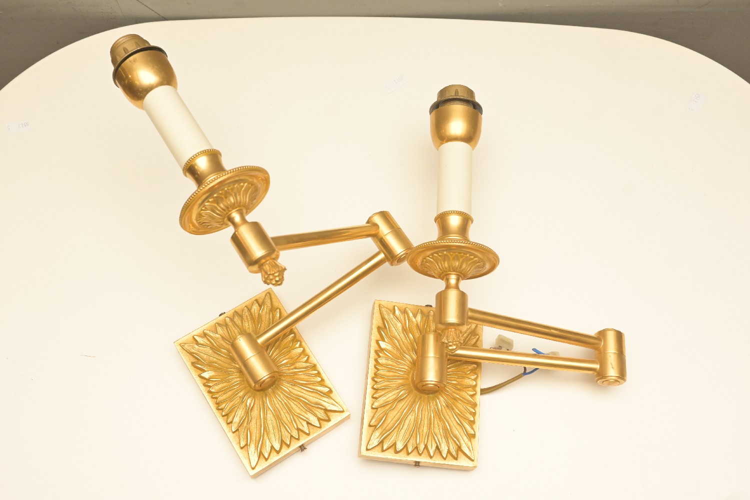 A PAIR OF GILT WALL LIGHTS (30H CM) (LEONARD JOEL DELIVERY SIZE: MEDIUM)