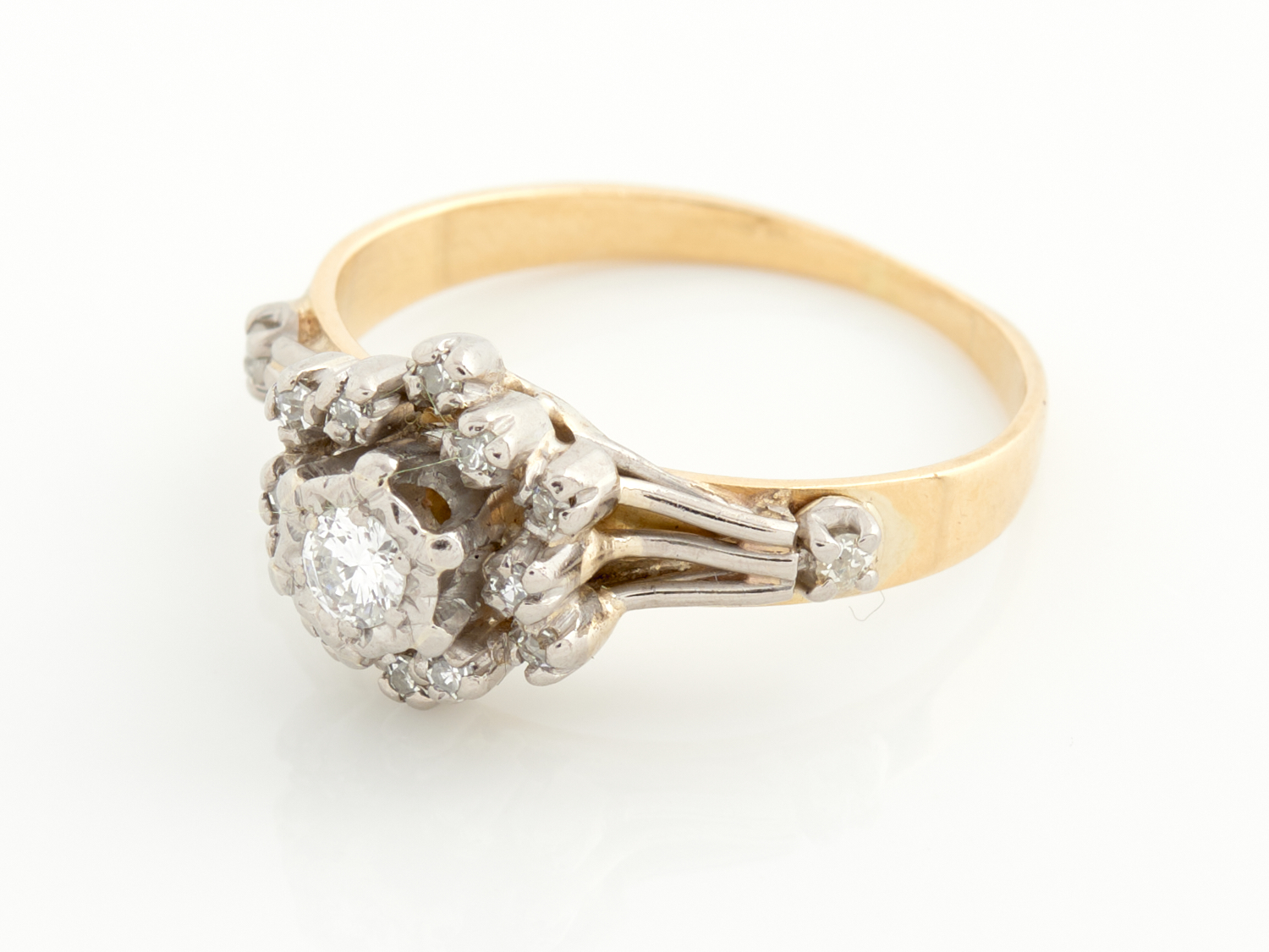 A DIAMOND RING IN STAMPED 18CT GOLD AND PALLADIUM, SIZE O, 4.3GMS
