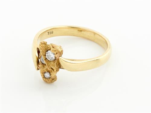 A DIAMOND SET RING IN TEXTURED 18CT GOLD, SIZE Q, 5.6GMS