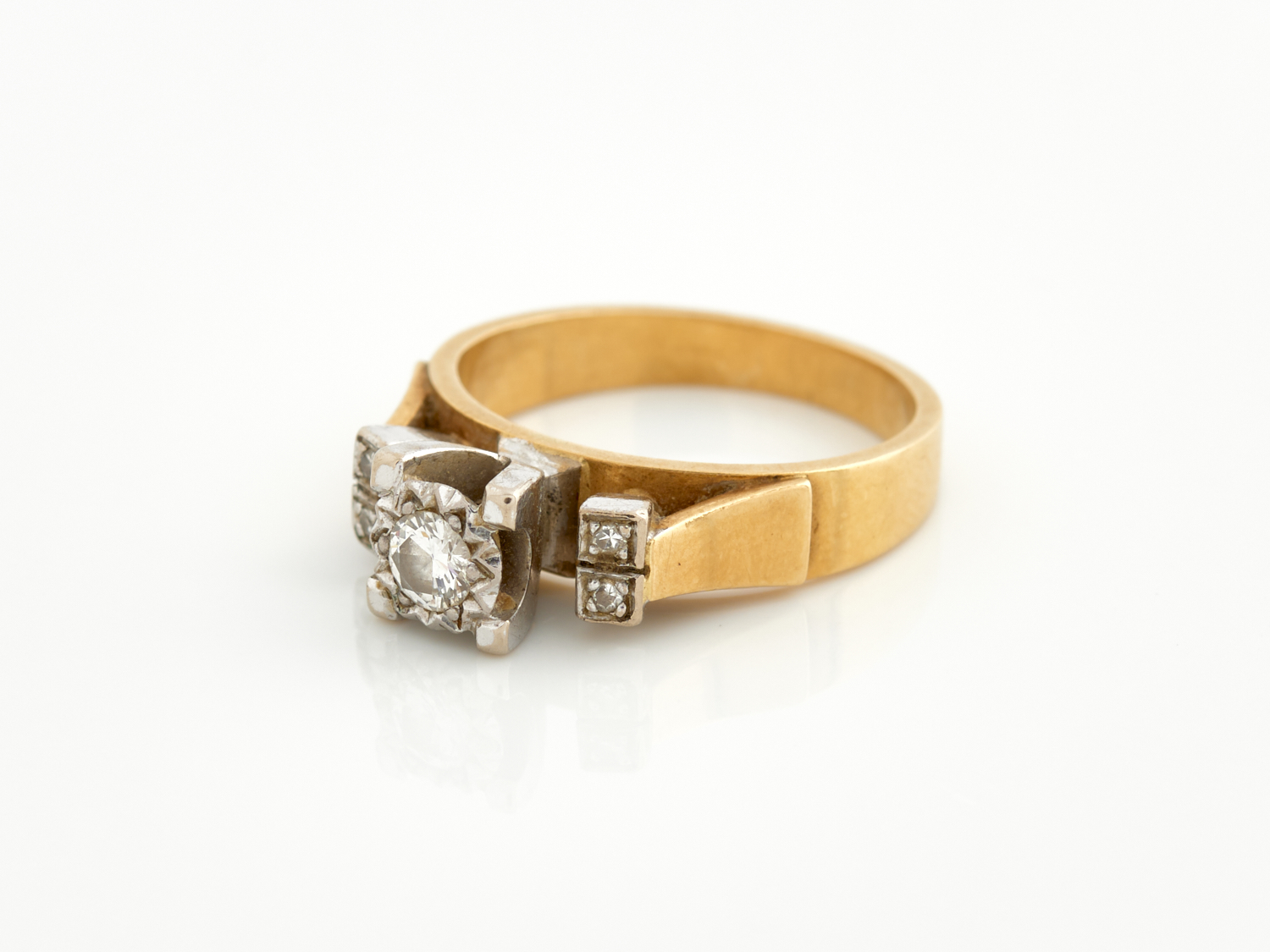 A DIAMOND RING IN 18CT GOLD AND PLATINUM, SIZE I, 4.9GMS