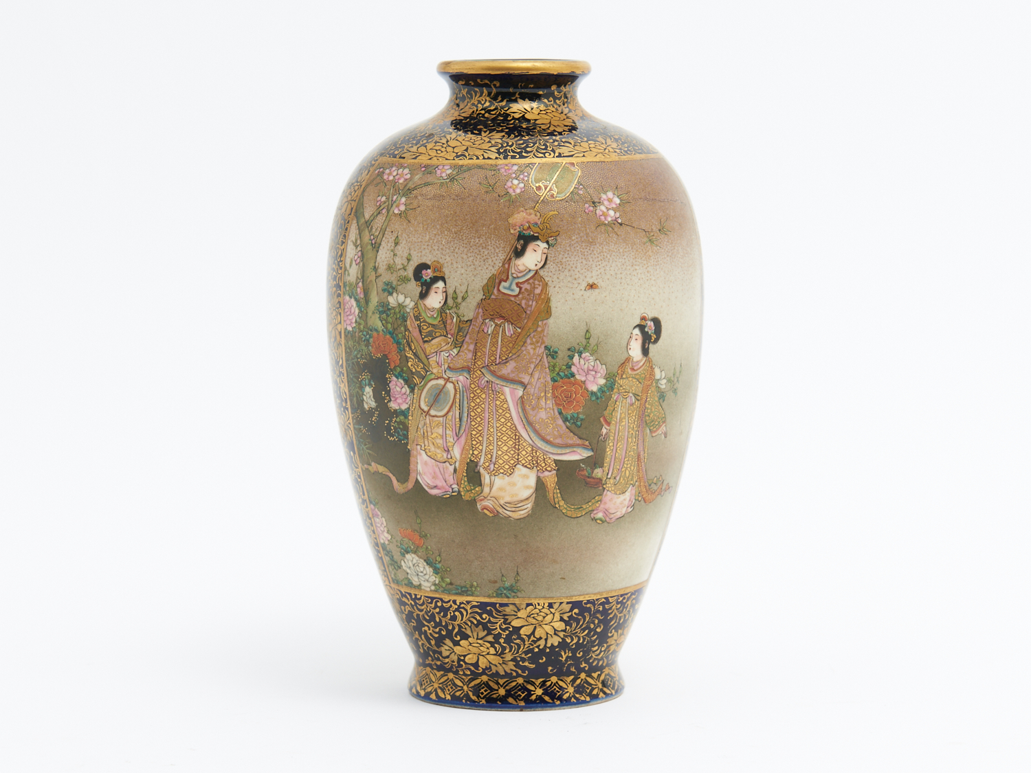 A SATSUMA VASE DECORATED WITH TWO LARGE SCENES OF FIGURES AGAINST LANDSCAPES H.20CM, LEONARD JOEL DELIVERY SIZE: SMALL