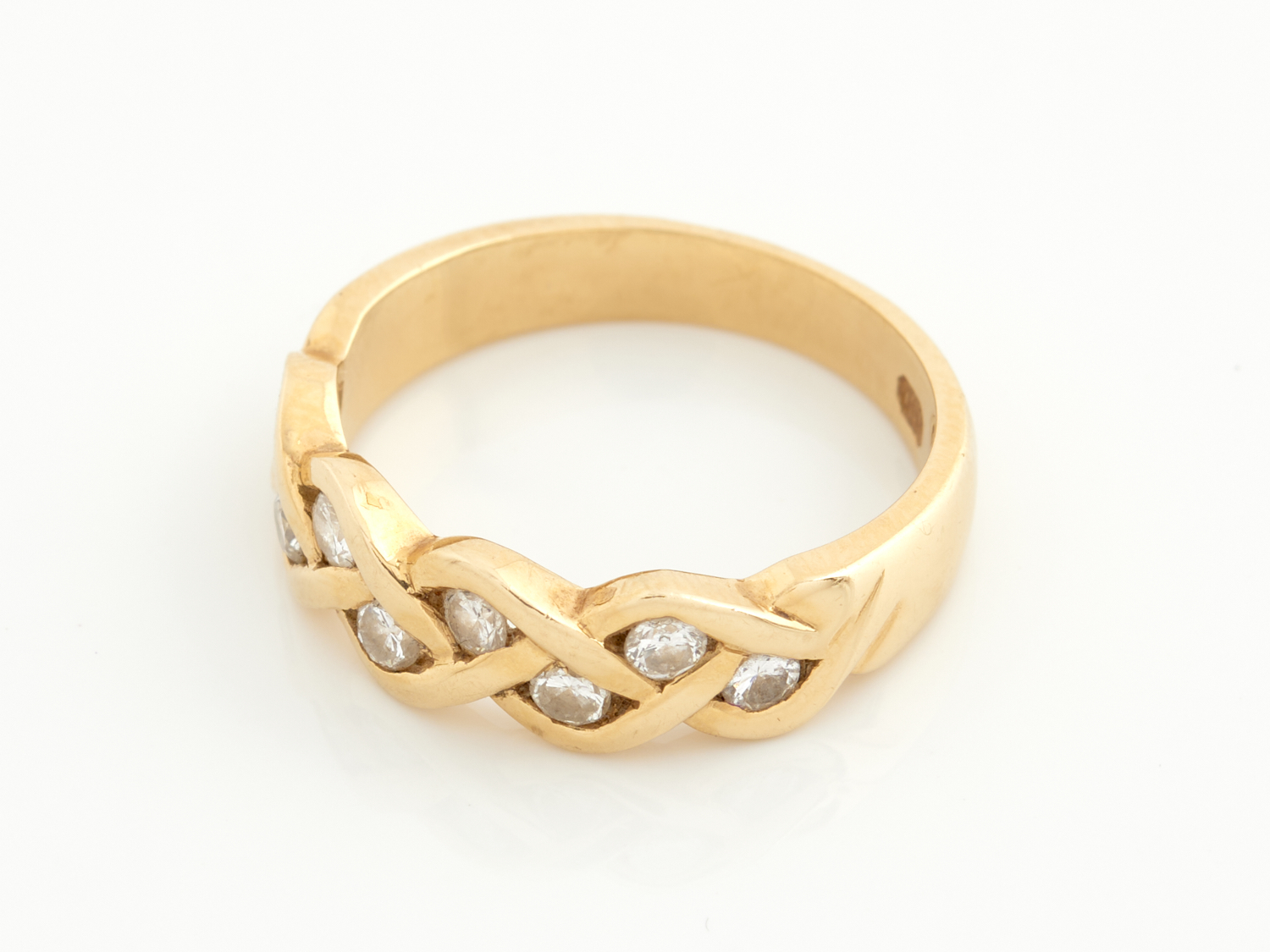 A DIAMOND SET CRISS CROSS RING IN 18CT GOLD, SIZE N, 5.0GMS