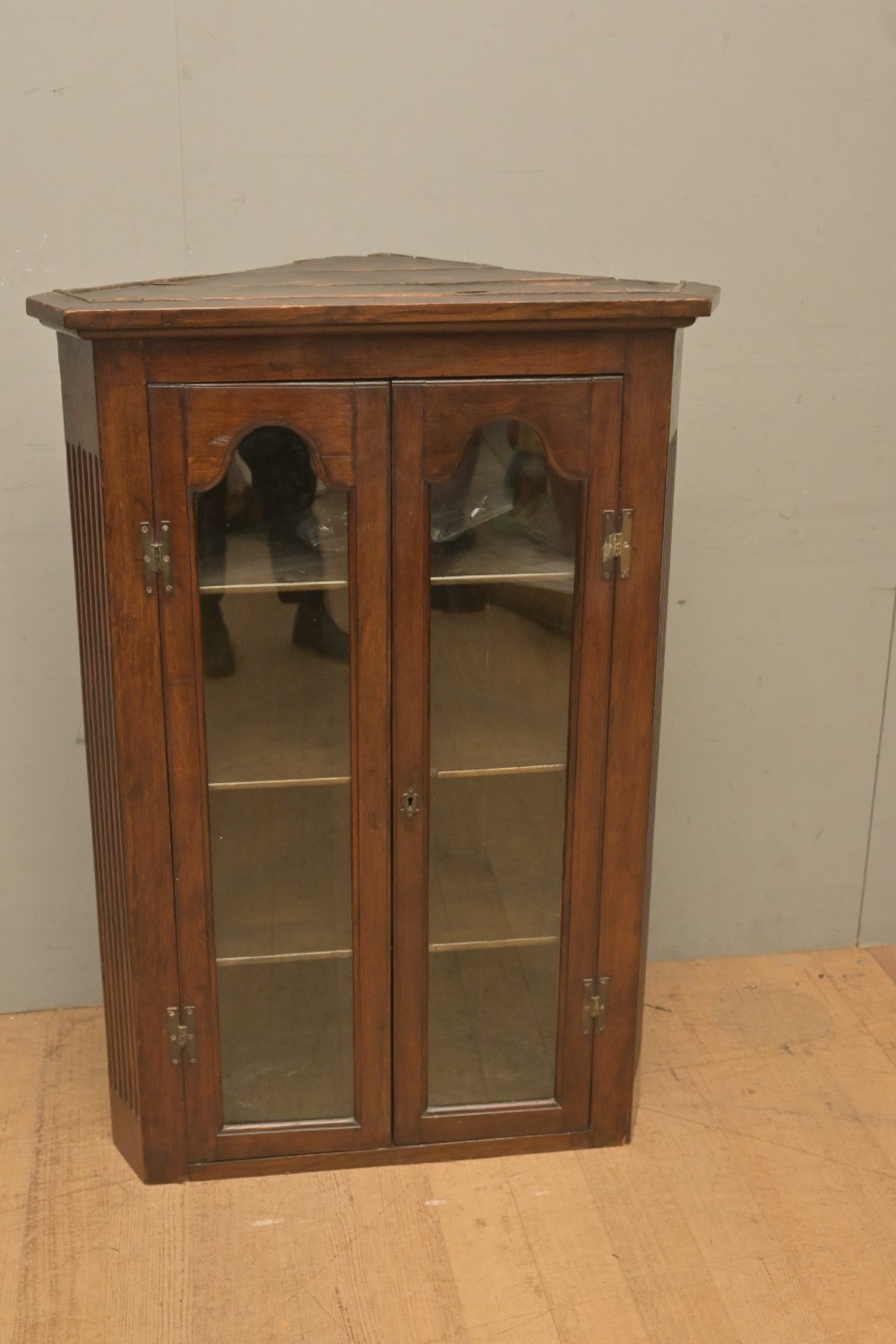 A MID 18TH CENTURY OAK HANGING CORNER CUPBOARD (A/F) (118H X 82W X 48D CM) (LEONARD JOEL DELIVERY SIZE: X-LARGE)