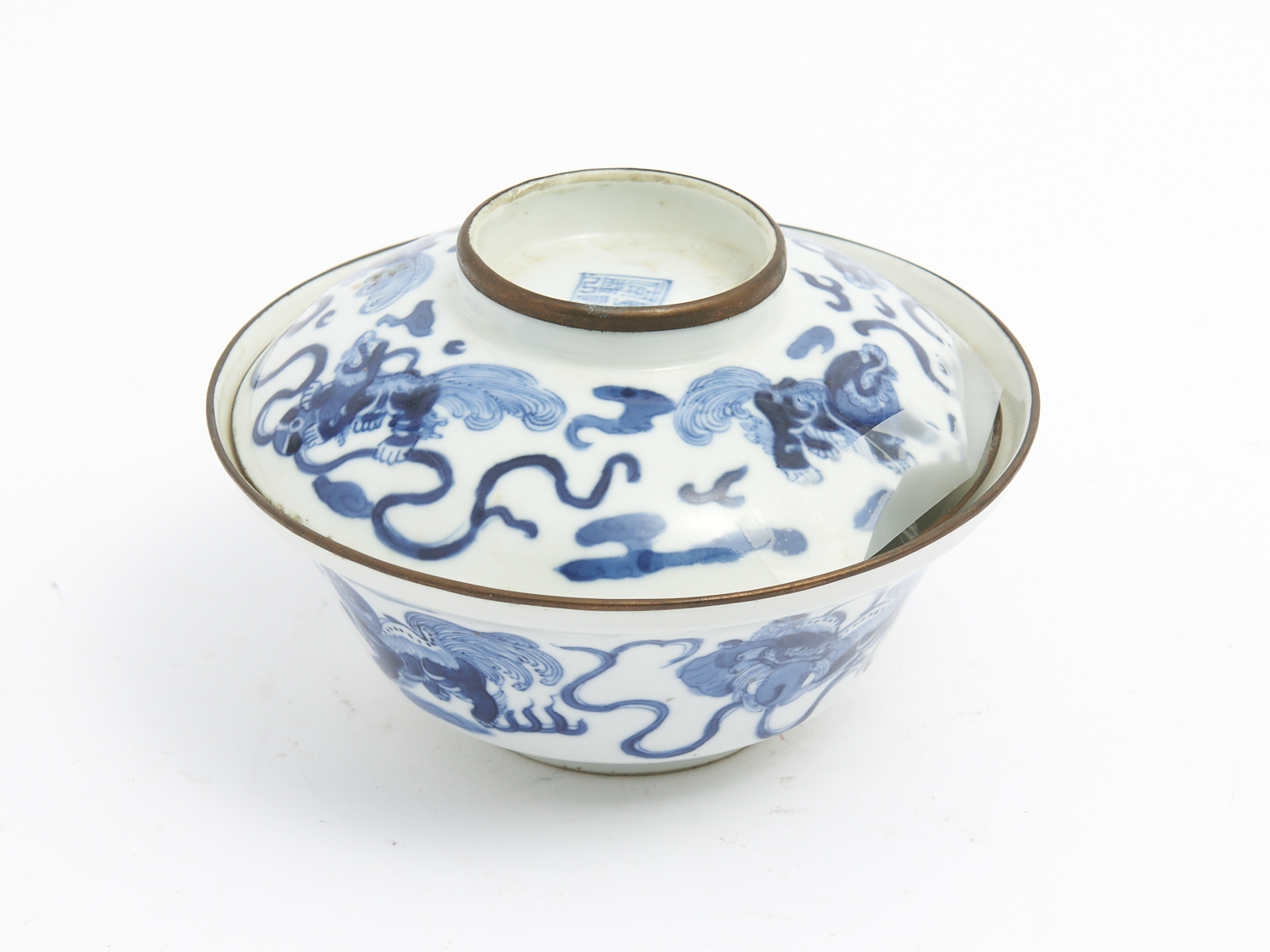 A CHINESE BLUE AND WHITE COVERED BOWL (A/F) DIA.15CM, LEONARD JOEL DELIVERY SIZE: SMALL