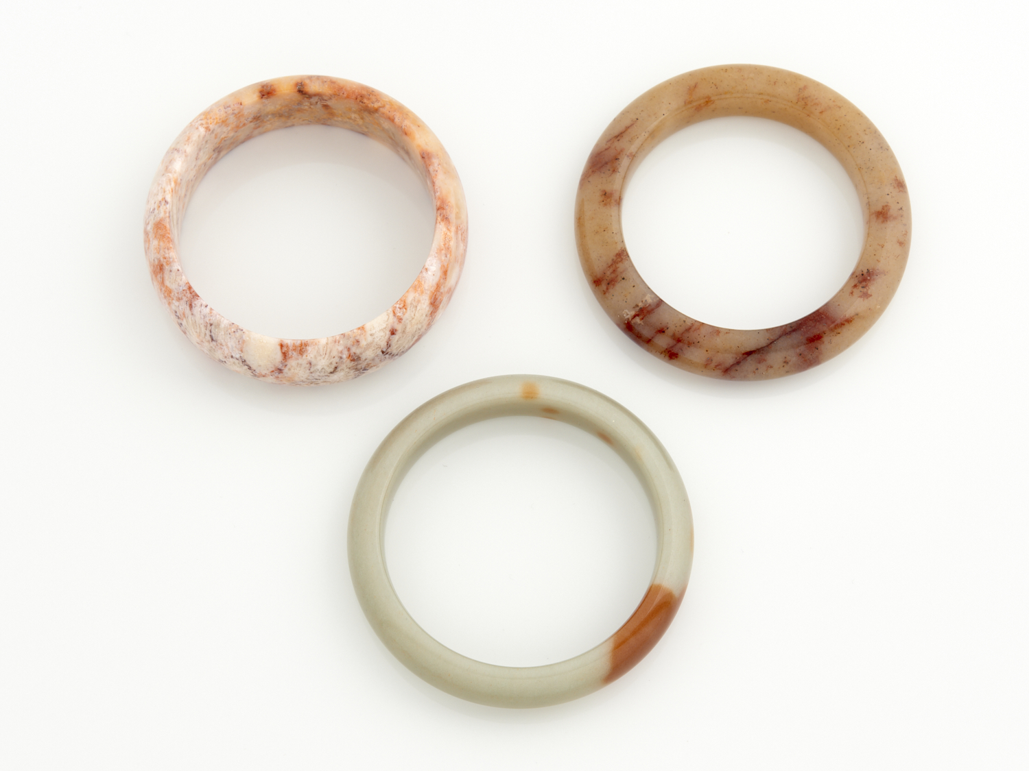 A COLLECTION OF THREE JADE BANGLES, INTERNAL DIAMETER 59MM, 56MM AND 60MM