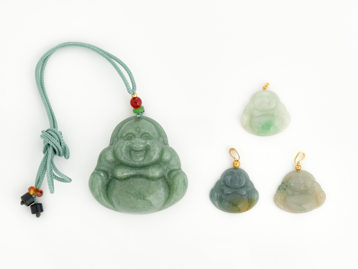 A COLLECTION OF CARVED JADE BUDDHA'S, INCLUDING THREE PENDANTS