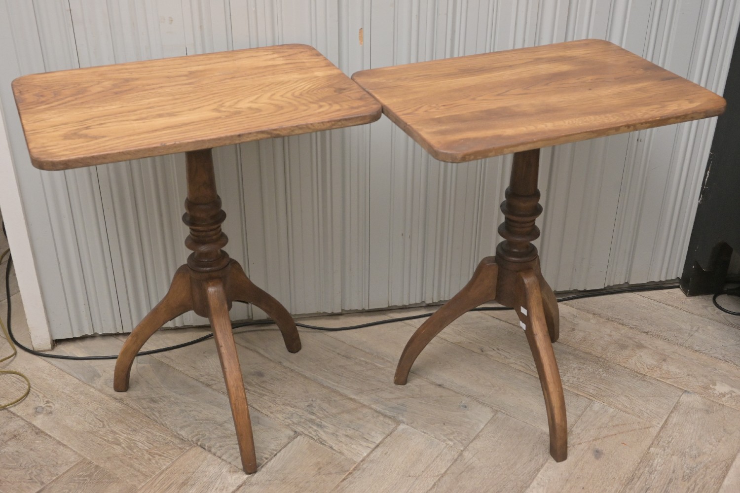 A PAIR OF GEORGIAN STYLE OAK TRIPOD TABLES (70H X 58W X 40D CM) (LEONARD JOEL DELIVERY SIZE: X-LARGE)