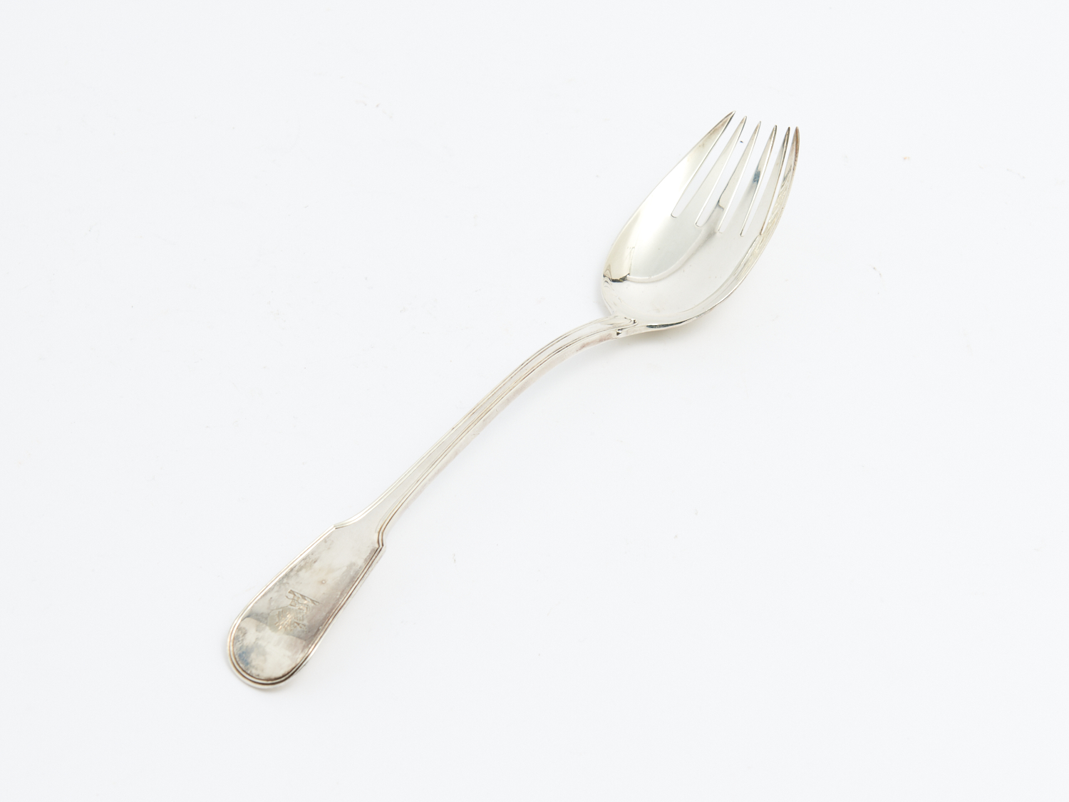 A VICTORIAN STERLING SILVER RUNSIBLE SPOON 146G L.29CM, LEONARD JOEL DELIVERY SIZE: SMALL