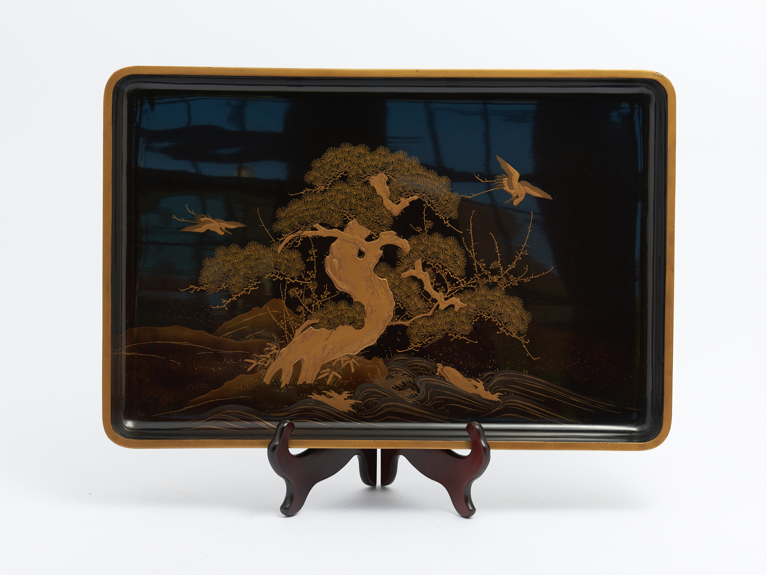A LACQUER SERVING TRAY, HORAIZAN THEME W.55CM, LEONARD JOEL DELIVERY SIZE: MEDIUM