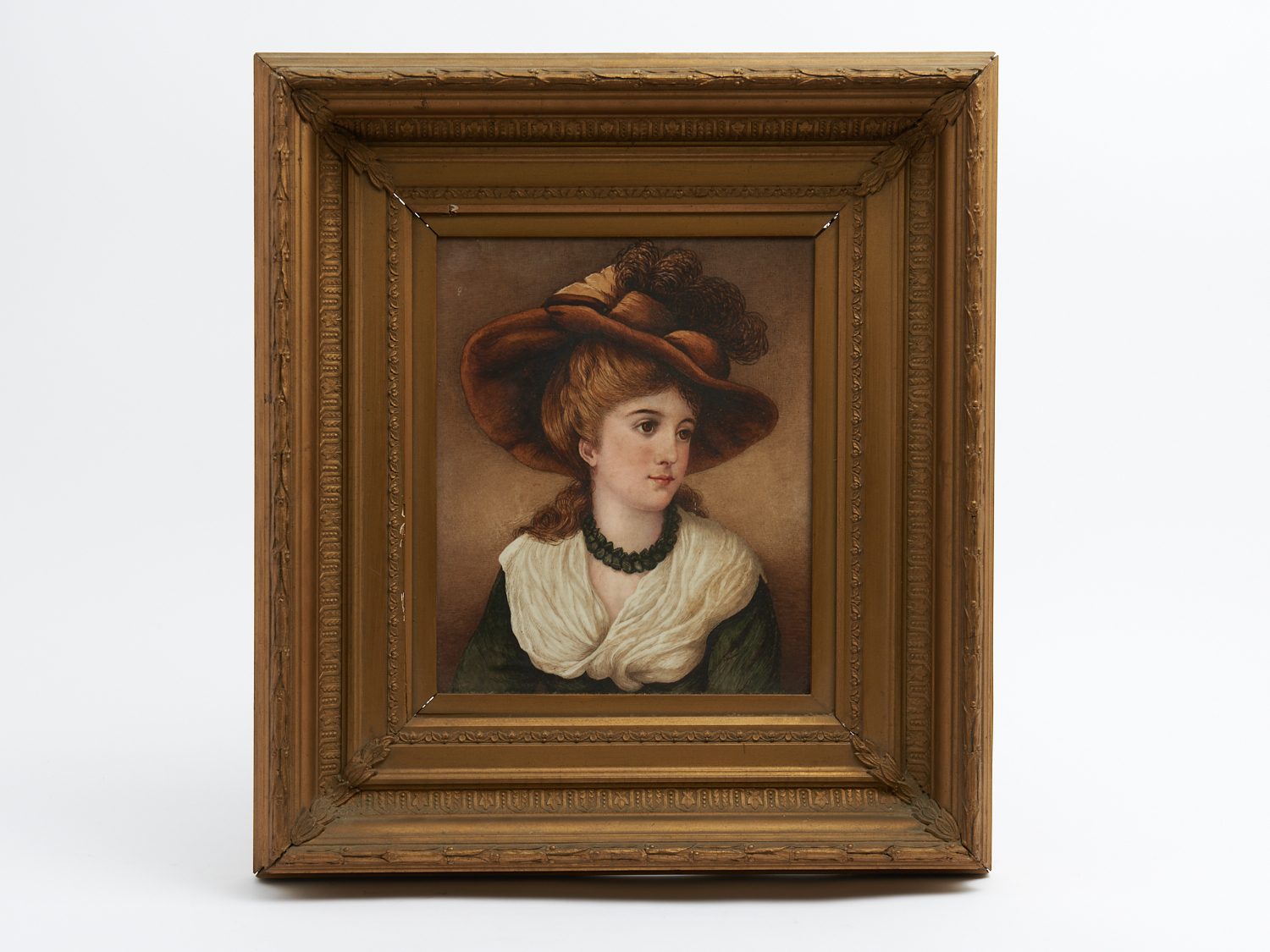 ENGLISH SCHOOL, LATE 19th CENTURY, 'SCHOOL REVISITED', PAINTED CERAMIC TILE IN ORIGINAL GILT FRAME, ORIGINAL LABEL TO THE REVERSE, 52 x 47CM