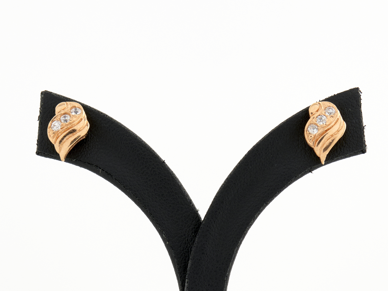 A PAIR OF OF WHITE STONE EARRINGS IN 18CT ROSE GOLD, TO POST AND SCREW BACK FITTINGS, 12 X 8MM, 2.6GMS