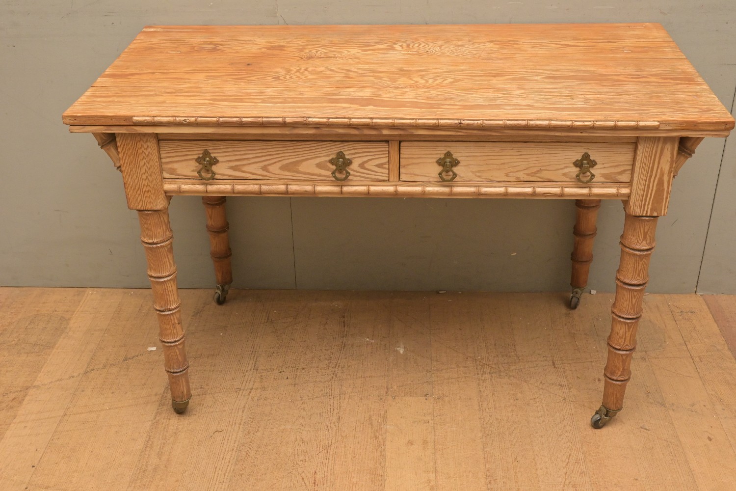 AN EARLY 20TH CENTURY PINE BAMBOO EFFECT TWO DRAW HALL TABLE (A/F) (76H X 122W X 60D CM) (LEONARD JOEL DELIVERY SIZE: LARGE)