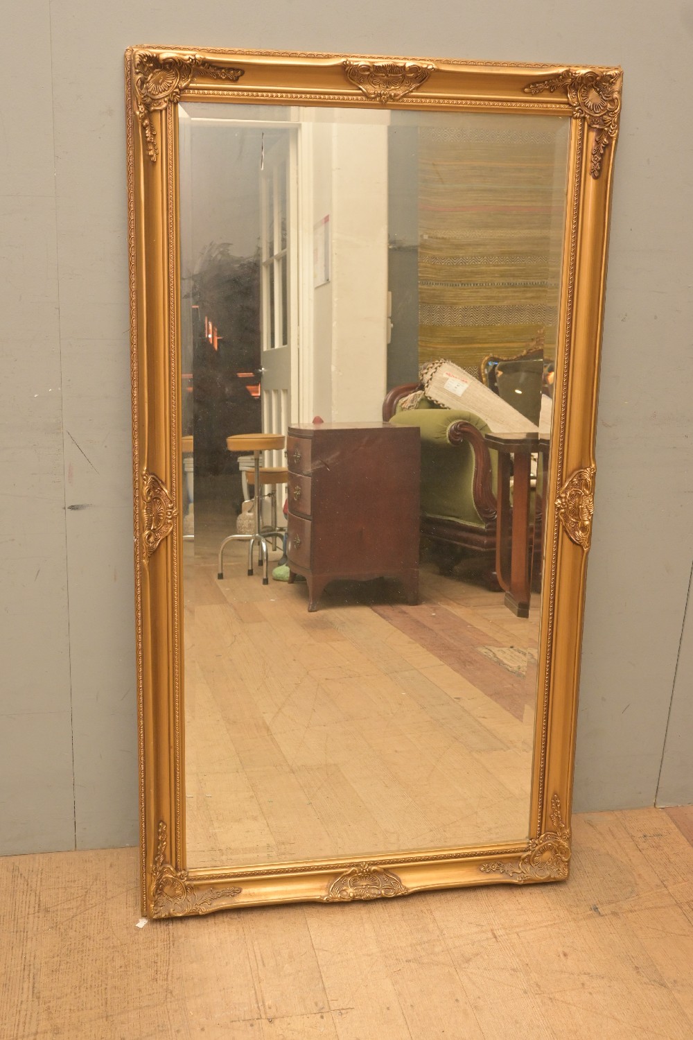 A GILT FRAMED OVERMANTLE MIRROR (137H X 76W CM) (LEONARD JOEL DELIVERY SIZE: LARGE)