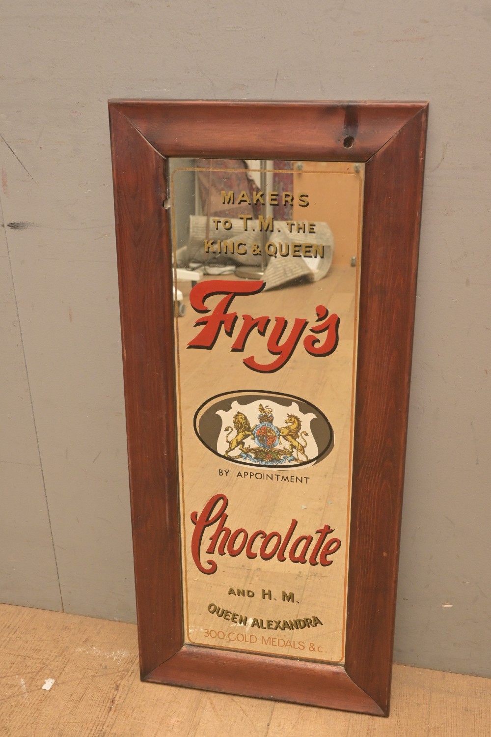 A FRY'S CHOCOLATE WOODEN FRAMED MIRROR (82H X 37W CM) (LEONARD JOEL DELIVERY SIZE: LARGE)