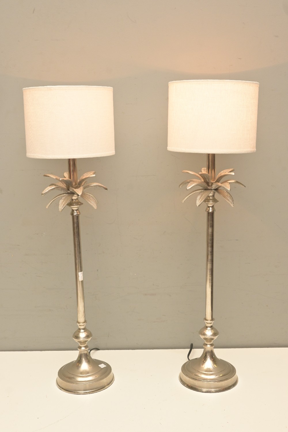 A PAIR OF DECORATIVE CHROME PLATED LAMPS (72H CM) (LEONARD JOEL DELIVERY SIZE: MEDIUM)