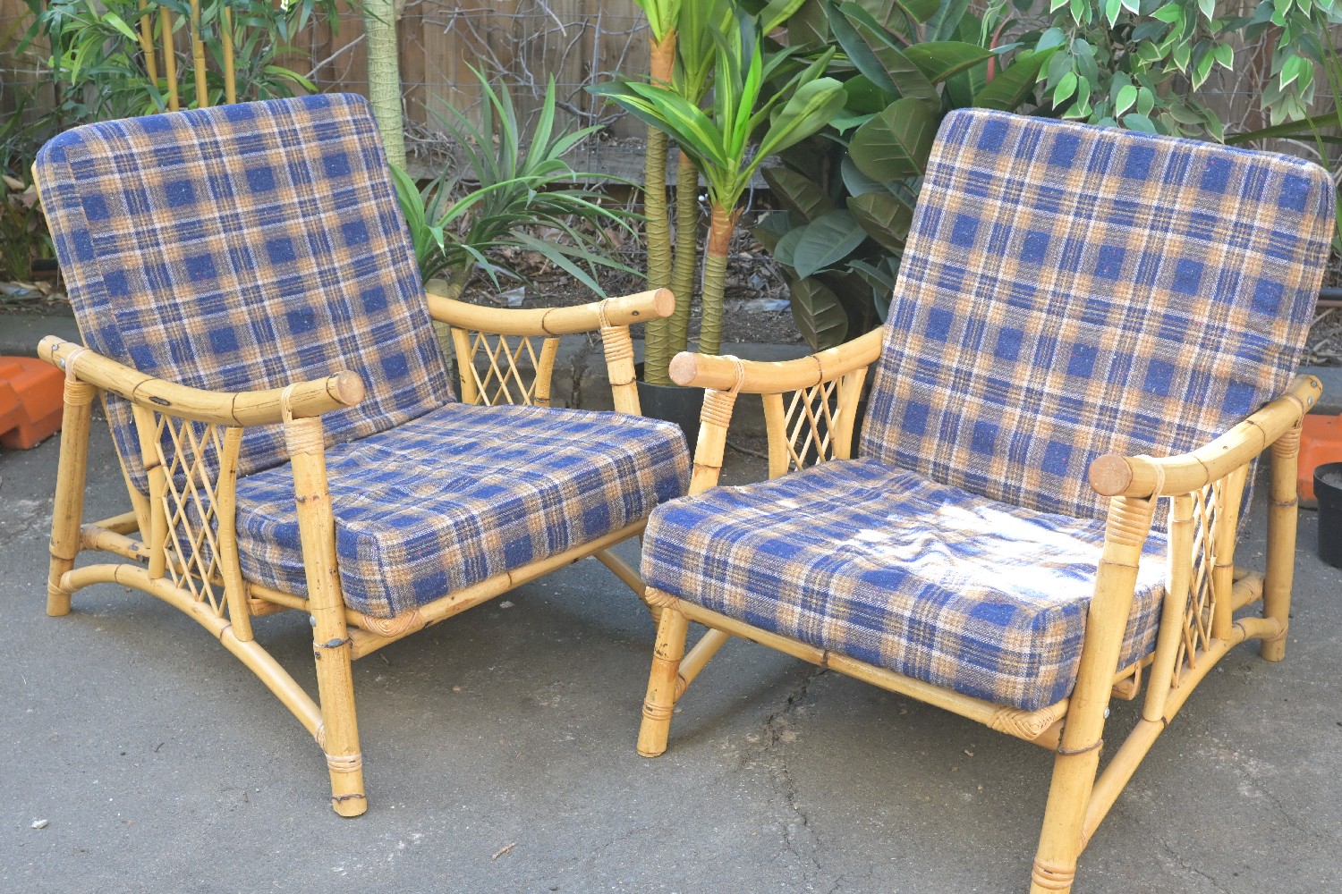 A PAIR OF BAMBOO ARMCHAIRS (A/F) (74H X 56W X 87D CM) (LEONARD JOEL DELIVERY SIZE: X-LARGE)