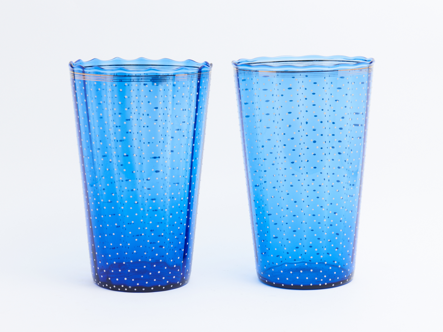 A PAIR OF BELGIAN "BLOOM" VASES H.33.5CM (A/F, CHIP TO THE RIM OF ONE VASE), LEONARD JOEL DELIVERY SIZE: LARGE